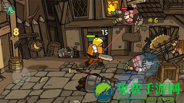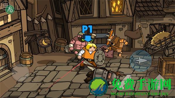 1、操控角色在城镇中与敌人战斗,利用武器和盾牌攻击、防御,击败敌人。