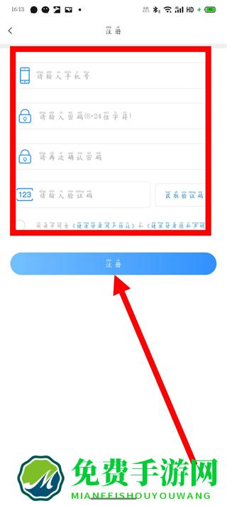 4、填写手机号码、设置密码并确认密码等信息,勾选同意协议后,点击注册按钮,完成账号注册。