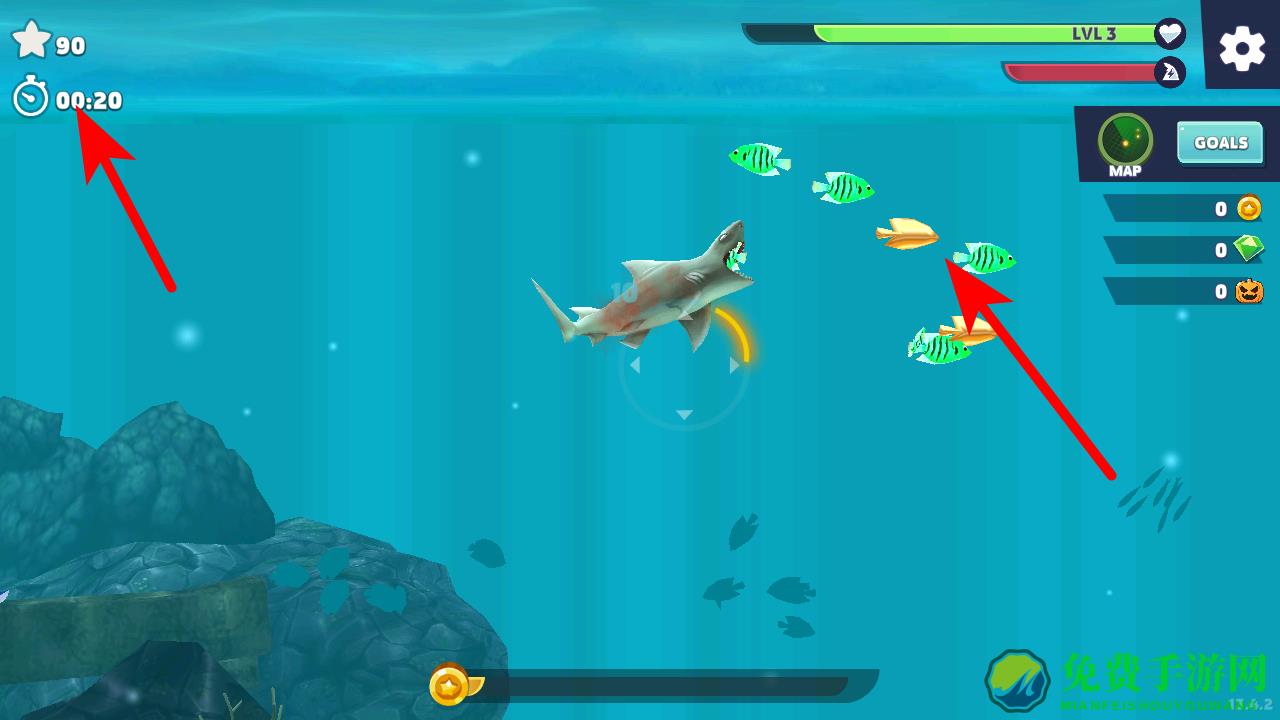 3、在海洋中优先捕食小鱼、弱小动物,积累分数和经验,同时注意游戏时间,在规定时间内尽可能获取高分。