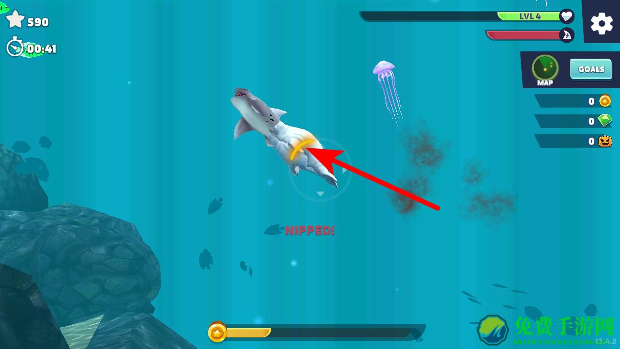 4、升级鲨鱼等级后,鲨鱼能力提升,可尝试捕食更大的生物,但要避开危险的海洋生物和障碍物,避免鲨鱼受伤,以此不断提升游戏成绩。