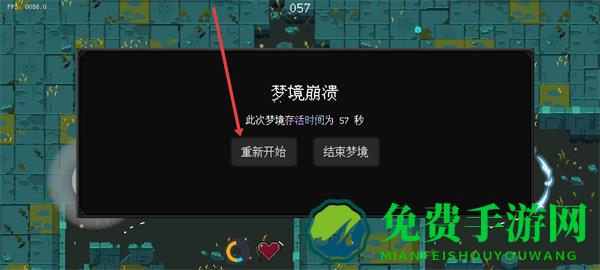 4、最下方血量耗尽梦境崩溃,可选择重新开始继续游戏,挑战更长的时间。