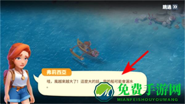 2、跟随剧情了解游戏背景,弗莉西亞因风暴船可能漏水,后续将开启农场冒险之旅。