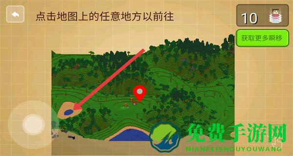 4、传送完成后,可通过左侧虚拟摇杆控制角色在新地点移动探索。