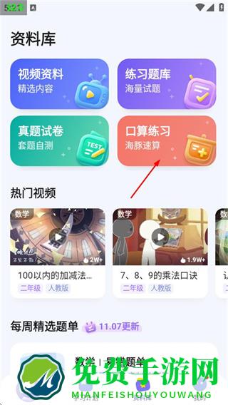 2、在资料库界面点击口算练习,进入口算练习界面。
