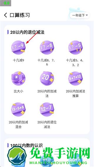 3、在口算练习界面可选择相关练习,进行口算练习。