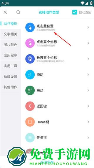 3、进入选择动作类型界面,选择“点击此位置”动作类型。