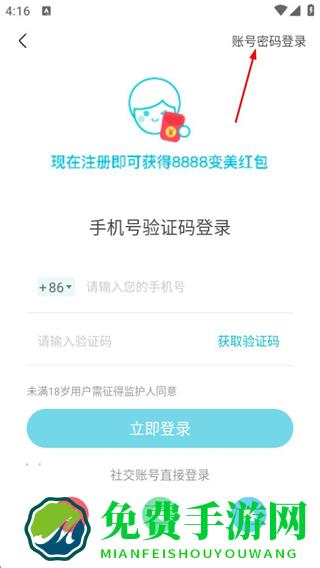 2、在登录页面,点击右上角账号密码登录选项,切换到账号密码登录界面。