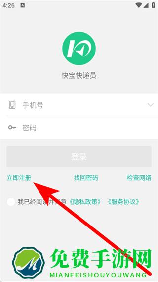 1、打开快宝快递员,在弹窗中点击同意,进入登录页面。