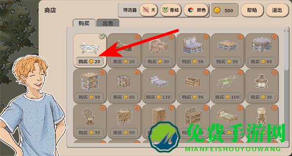 2、在商店界面,点击家具的购买按钮,消耗金币购买家具,用于装饰青蛙家园,提升家园美观度与功能性。