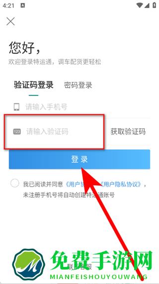 4、输入验证码并勾选协议后,点击登录按钮,完成登录。