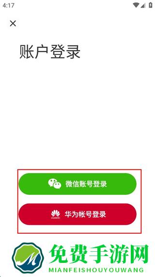 3、在账户登录页面选择微信账号登录或华为帐号登录,完成登录操作。
