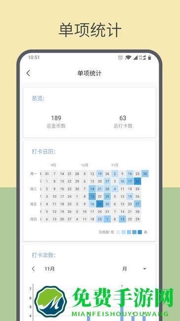 更有日历统计,直观看到打卡频率