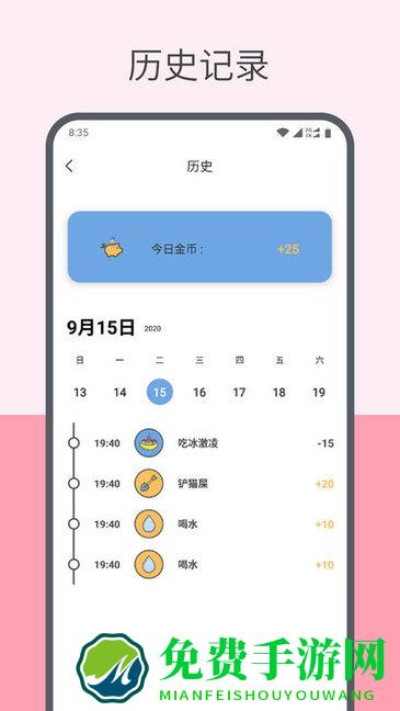 很不错的习惯养成辅助工具,大家可以记录自己的近期计划等设置提醒再也不用担心因为繁忙的生活遗忘了。更加专业的管理方式可以有效帮助用户提高生活节奏,节省诸多时间的浪费,操作简单用起来更加方便,需要就赶紧来免费手游网下载使用吧!