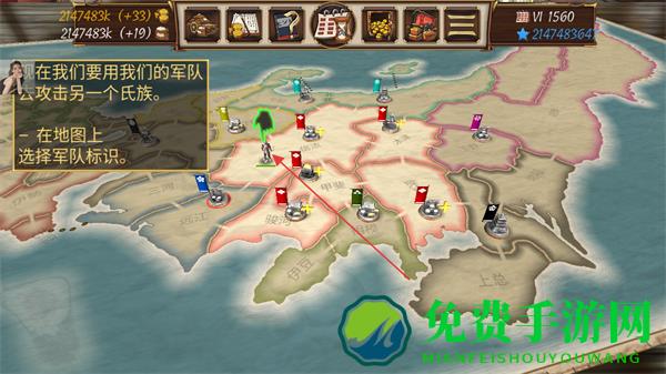 4、在地图上选择军队标识,指挥军队攻击另一个氏族,扩张领土。