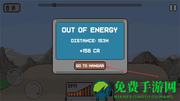 4、若能量耗尽,点击GOTOHANGAR返回机库,可升级赛车后继续游戏。