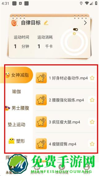 1、可在软件中选择各种分类下的运动视频进行锻炼。