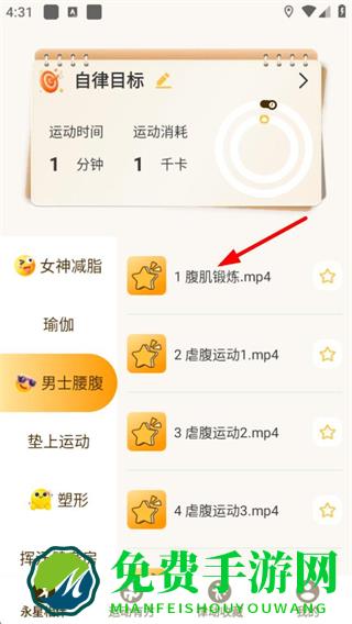 2、在男士腰腹分类中点击腹肌锻炼可进入该运动视频。