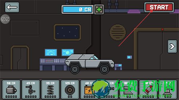 1、点击START开始游戏,可在车库中升级赛车部件,如发动机、弹簧等。