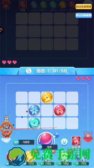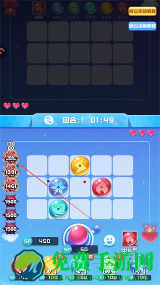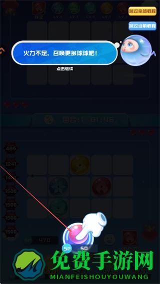 3、当火力不足时,消耗SP能量召唤更多球球,增强战斗阵容,应对更强的敌人。