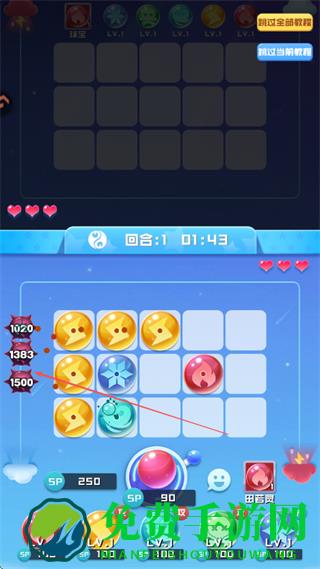 1、在棋盘上放置不同类型的球球如攻击型、辅助型,球球会自动攻击敌方目标,造成伤害。