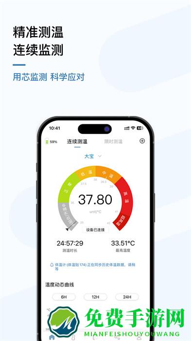 一款与电子体温计配合使用的软件,可以实现温度的实时监测,既可以当成一款测温工具,又可以将测温数据同步到服务器,以便查看。