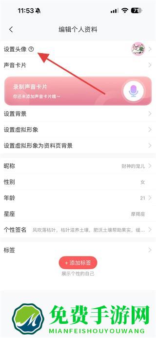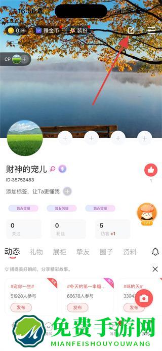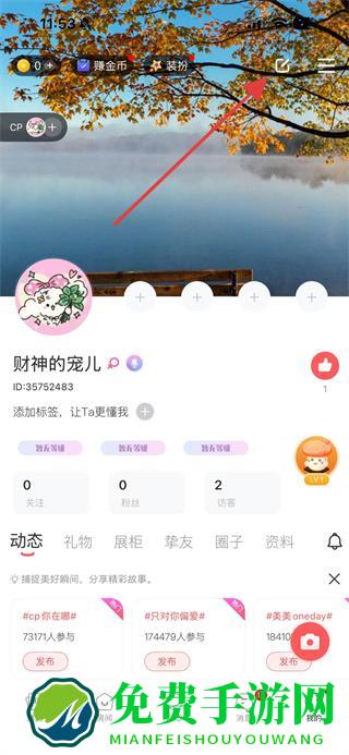 2、在个人页面中点击编辑图标,进入编辑个人资料界面。