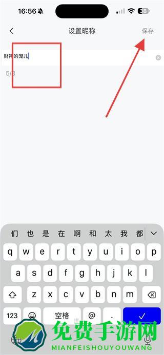 4、在昵称设置页面中输入新昵称,点击保存,完成语玩改名字的操作。