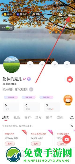 1、打开语玩APP,点击右上角三条横线图标,弹出功能菜单。