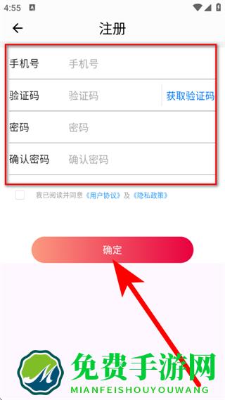 4、输入手机号、验证码、密码并确认密码后,点击确定,完成注册。