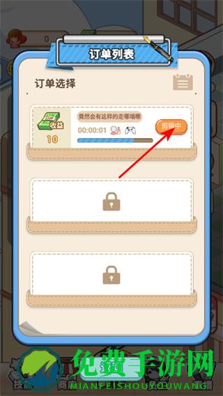 1、游戏中点击带有完成标识的任务图标,可进入订单列表界面,这是领取任务收益、推进业务进程的关键操作。