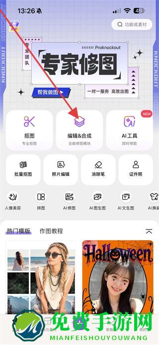 1、打开Photoroom APP,在首页找到编辑&合成选项并点击,进入背景选择页面。