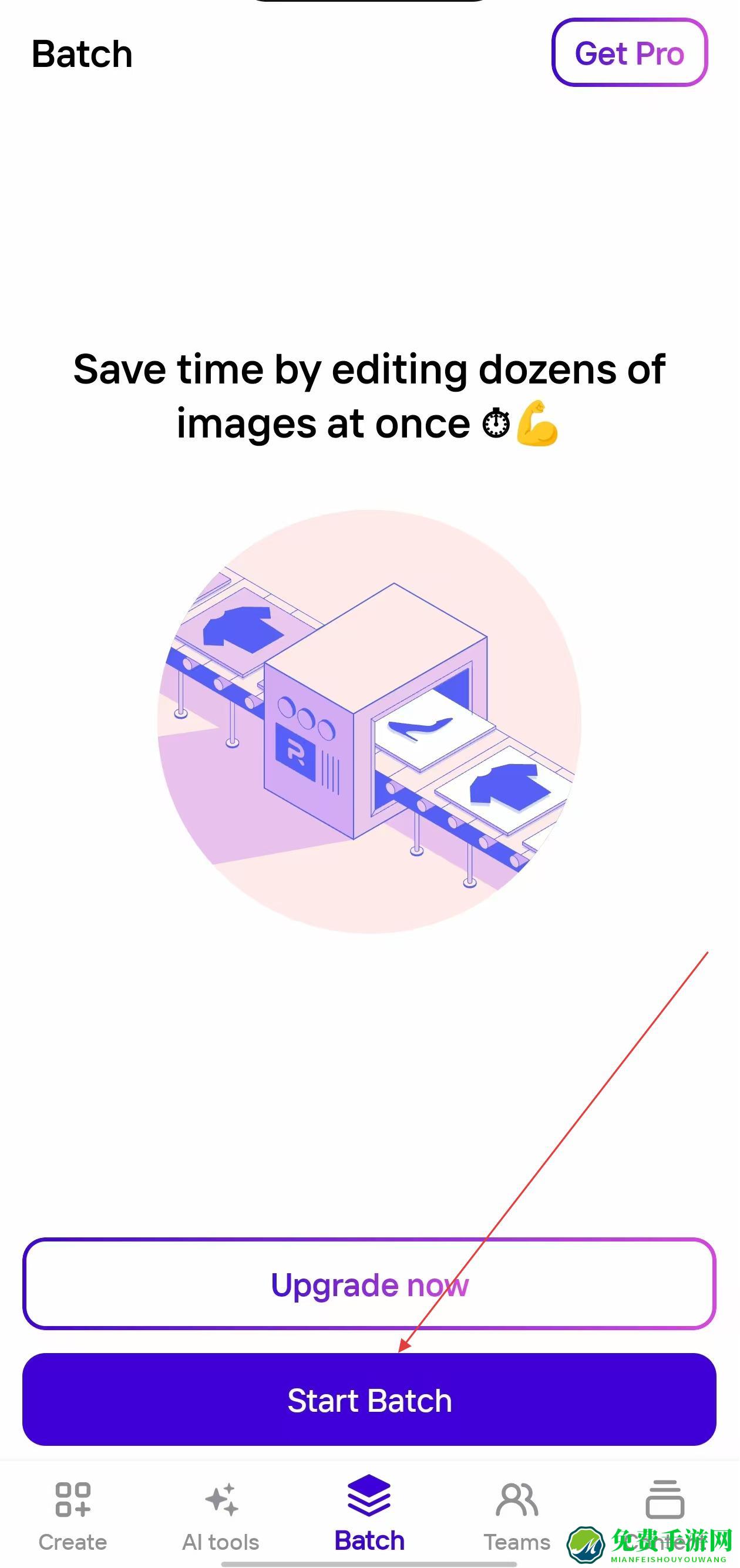 1、打开PhotoroomAPP,进入Batch功能页面,点击下方的Start Batch按钮。