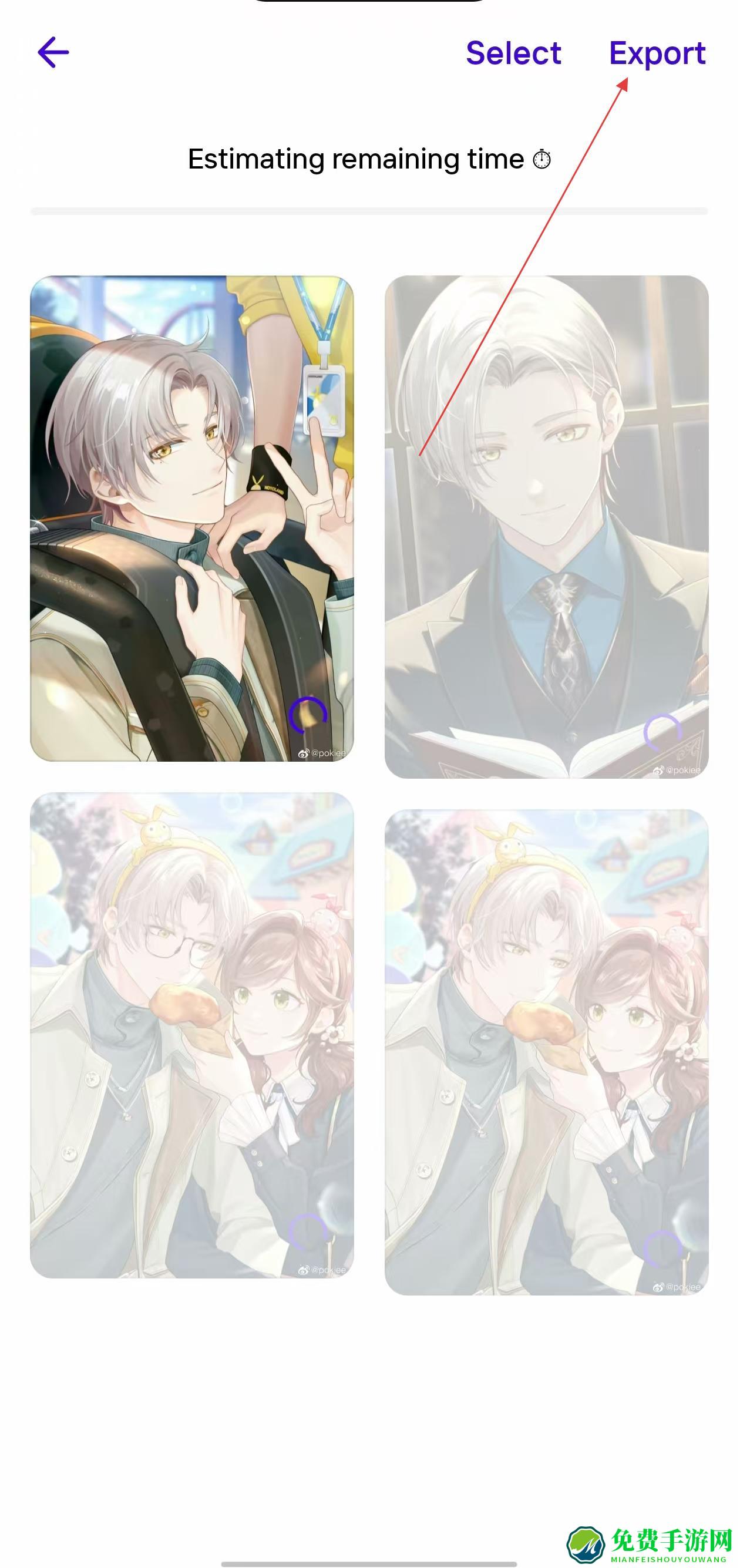 4、图片导入后,等待Photoroom完成批量处理,处理完毕后点击右上角的Export按钮,导出批量编辑后的图片。