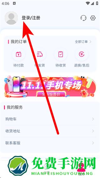 2、在个人中心页面,点击登录注册,进入登录流程。