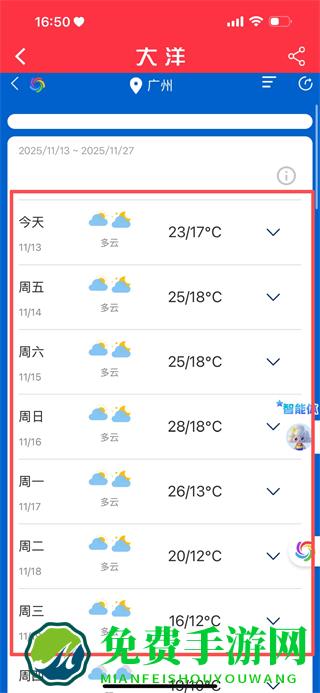 3、可查看广州地区的天气信息,包括今日及未来多日的气温、天气状况等。