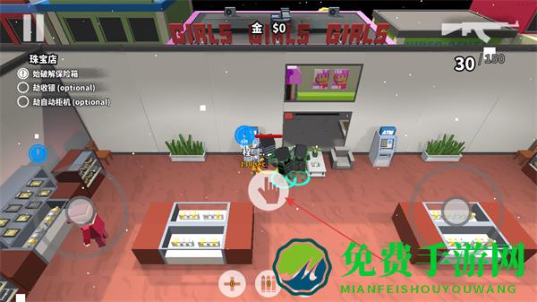 2、在珠宝店内,点击互动按钮,破解保险箱,同时注意店内的安保人员。
