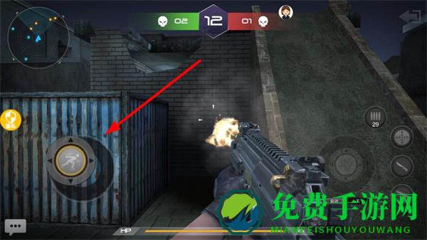 1、左侧虚拟摇杆控制移动,可灵活走位寻找掩体,如集装箱、砖墙后都可作为掩护,避免被敌方持续攻击。