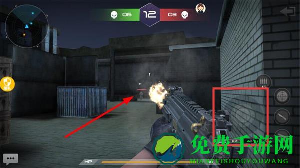 2、右侧射击区域控制开火,遭遇敌方时需快速瞄准射击,优先攻击暴露的敌人,若自身处于劣势可退回掩体后,待时机合适再探头反击。