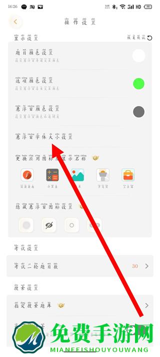 3、在操作设置页面,点击悬浮窗字体大小设置。
