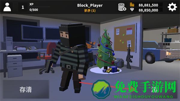 整体采用方块元素构建场景与角色,城市场景、各类道具及敌人都以方块造型呈现,风格独特且充满创意,视觉上简洁明快,打造出辨识度极高的游戏世界。