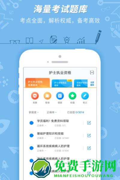 护士执业资格考试app是一款给护士考试提供考试服务的手机app,软件为用户提供海量的对应题材章节的练习题材,并给出试题相应的详细解析,模拟考试错题练习等功能让你自信的步入考场,成功就在下一步,拥有最新模拟题、历年考试真题、题题精解析等等帮助用户可以更加高效的学习,更快速的通过护士资格证书考试,需要的朋友们快来免费手游网下载吧。