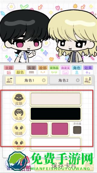 1、点击角色1,可对眉毛、眼睛、嘴巴等面部细节进行调整,打造独特角色形象。