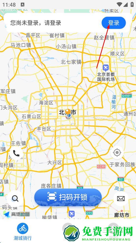 1、打开共享出行类软件,若页面提示“您尚未登录,请登录”,点击右上角“登录”按钮。