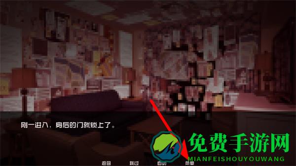 3、在游戏场景中,遇到门被锁情况,点击菜单选项,进入菜单界面。