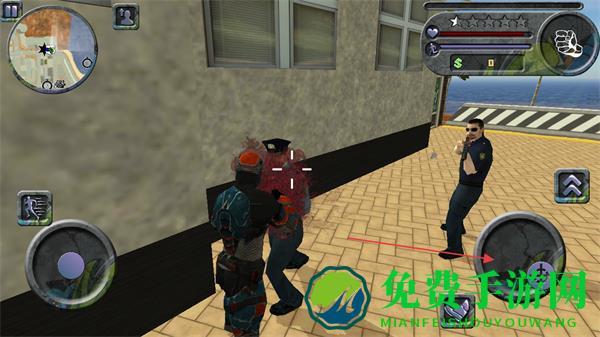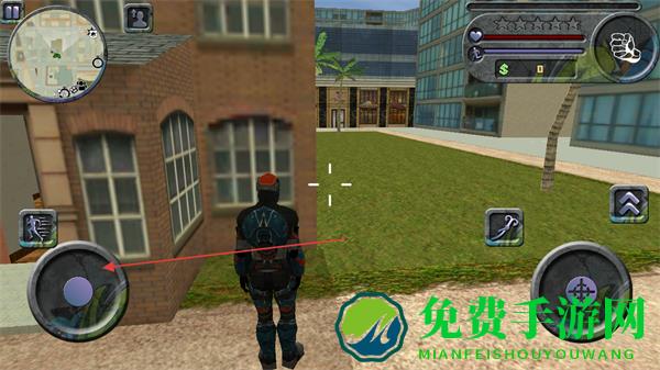 1、通过左侧虚拟摇杆控制角色移动,在城市场景中自由探索。