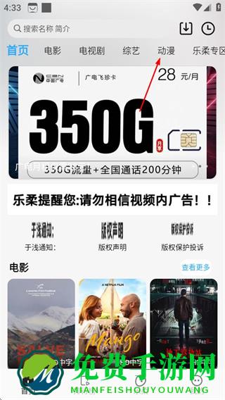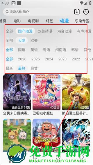 1、在于浅视频首页,点击动漫分类标签,进入动漫分类页面。