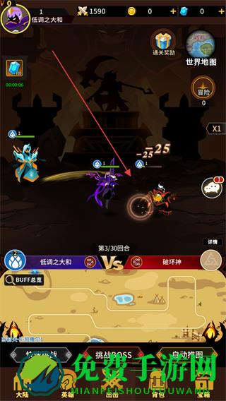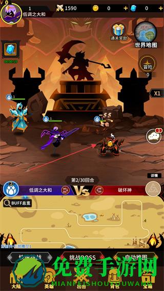 2、操控英雄移动,发起攻击,与破坏神展开回合制战斗。