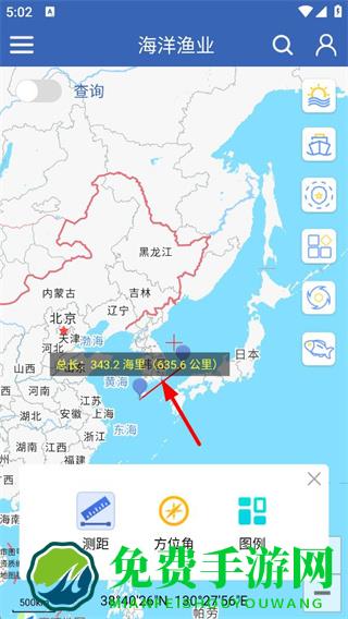 3、在地图上进行点击两个位置进行测距操作,即可查看总长度等测距结果。