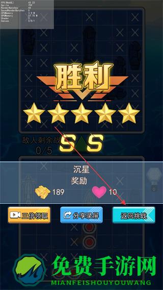 4、击沉所有敌方战舰后获得胜利,点击返回挑战继续新的对局。