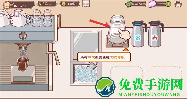 2、制作冷饮时,选择大玻璃杯,按提示操作,确保容器符合冷饮制作要求。